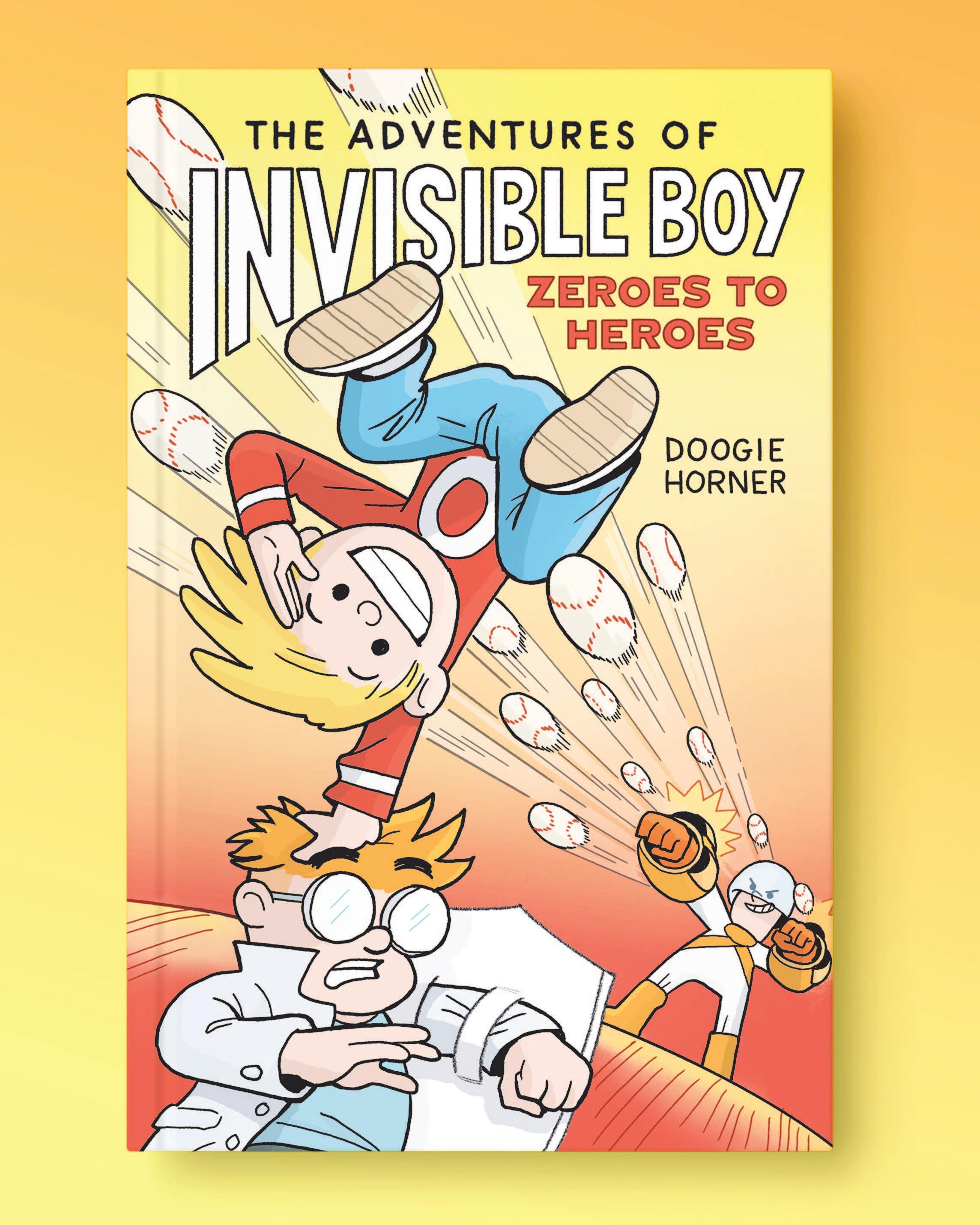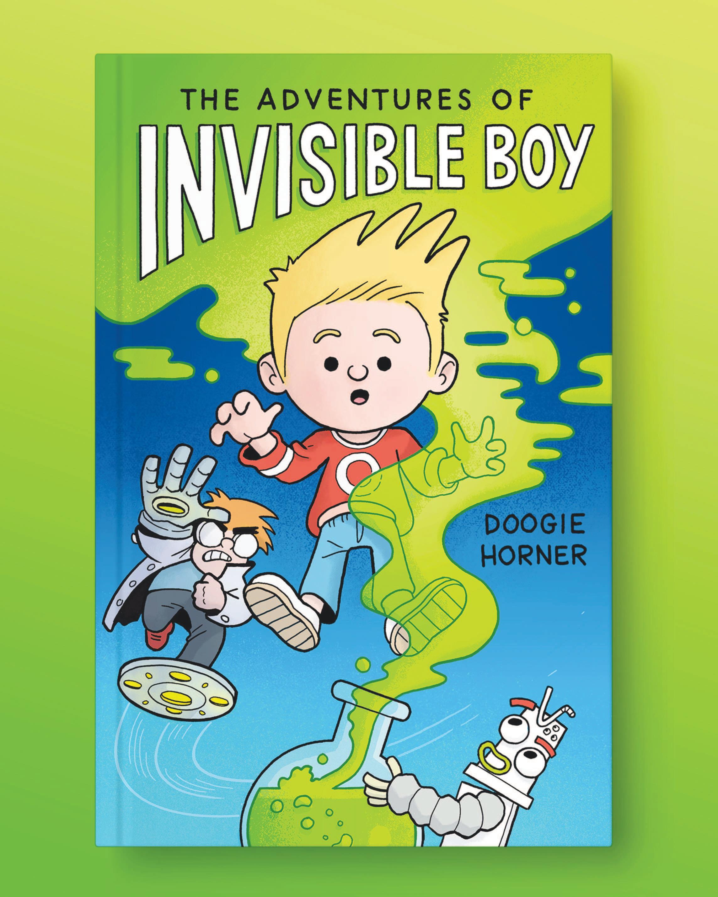 In the early days of COVID-19, Horner started drawing comics with his son, joking about bad superhero powers. When invisibility came up, it gave him an idea: if you were writing a comic about a literally invisible superhero, could you tell the story only using word bubbles? He drew a mini-comic about a boy who turns invisible and showed it to his agent, along with a handful of other kid-oriented mini-comics.