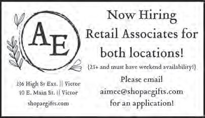 MPLOYMENT OPPORTUNITIES IN VICTOR is ad is coordinated by Victor Community Development Office. Now Hiring Retail Associates for both locations (21+ and must have weekend availability!) Please email aimee@shopaegifts.com for an application!