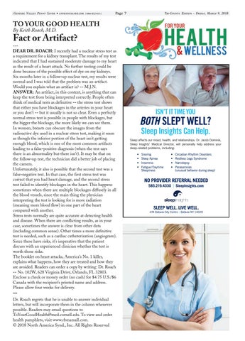 Fact or Artifact? --DEAR DR. ROACH: I recently had a nuclear stress test as a requirement for a kidney transplant. The results of my test indicated that I had sustained moderate damage to my heart as the result of a heart attack. No further testing could be done because of the possible effect of dye on my kidneys. Six months later in a follow-up nuclear test, my results were normal and I was told that the problem was an artifact. Would you explain what an artifact is? -- M.J.N. ANSWER: An artifact, in this context, is anything that can keep the test from being interpreted correctly. People often think of medical tests as definitive -- the stress test shows that either you have blockages in the arteries in your heart or you don’t -- but it usually is not so clear. Even a perfectly normal stress test is possible in people with blockages, but the bigger the blockage, the more likely we can see them. In women, breasts can obscure the images from the radioactive dye used in a nuclear stress test, making it seem as though the inferior portion of the heart isn’t getting enough blood, which is one of the most common artifacts leading to a false-positive diagnosis (when the test says there is an abnormality but there isn’t). It may be that on the follow-up test, the technician did a better job of placing the camera. Unfortunately, it also is possible that the second test was a false-negative test. In that case, the first stress test was correct that you had heart damage, and the second stress test failed to identify blockages in the heart. This happens sometimes when there are multiple blockages diffusely in all the blood vessels, since the main thing the physician interpreting the test is looking for is more radiation (meaning more blood flow) in one part of the heart compared with another. Stress tests normally are quite accurate at detecting health and disease. When there are conflicting results, as in your case, sometimes the answer is clear from other data (including common sense). Other times a more definitive test is needed, such as a cardiac catheterization (angiogram). Since these have risks, it’s imperative that the patient discuss with an experienced clinician whether the test is worth those risks. The booklet on heart attacks, America’s No. 1 killer, explains what happens, how they are treated and how they are avoided. Readers can order a copy by writing: Dr. Roach -- No. 102W, 628 Virginia Drive, Orlando, FL 32803. Enclose a check or money order (no cash) for $4.75 U.S./$6 Canada with the recipient’s printed name and address. Please allow four weeks for delivery. *** Dr. Roach regrets that he is unable to answer individual letters, but will incorporate them in the column whenever possible. Readers may email questions to ToYourGoodHealth@med.cornell.edu. To view and order health pamphlets, visit www.rbmamall.com. © 2018 North America Synd., Inc. All Rights Reserved