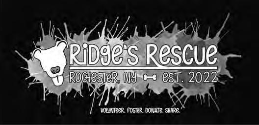 While many of us think of animal rescues as a shelter-based system, Ridge’s Rescue has ipped the script. “ ere’s no brick and mortar, no shelter,” shares Kelley. Each dog is placed in a comfortable and safe home environment while they are being fostered. Most of Ridge’s Rescue fosters come from Rochester Animal Services, and as Kelley shares, each dog has their own medical and/or behavioral needs.