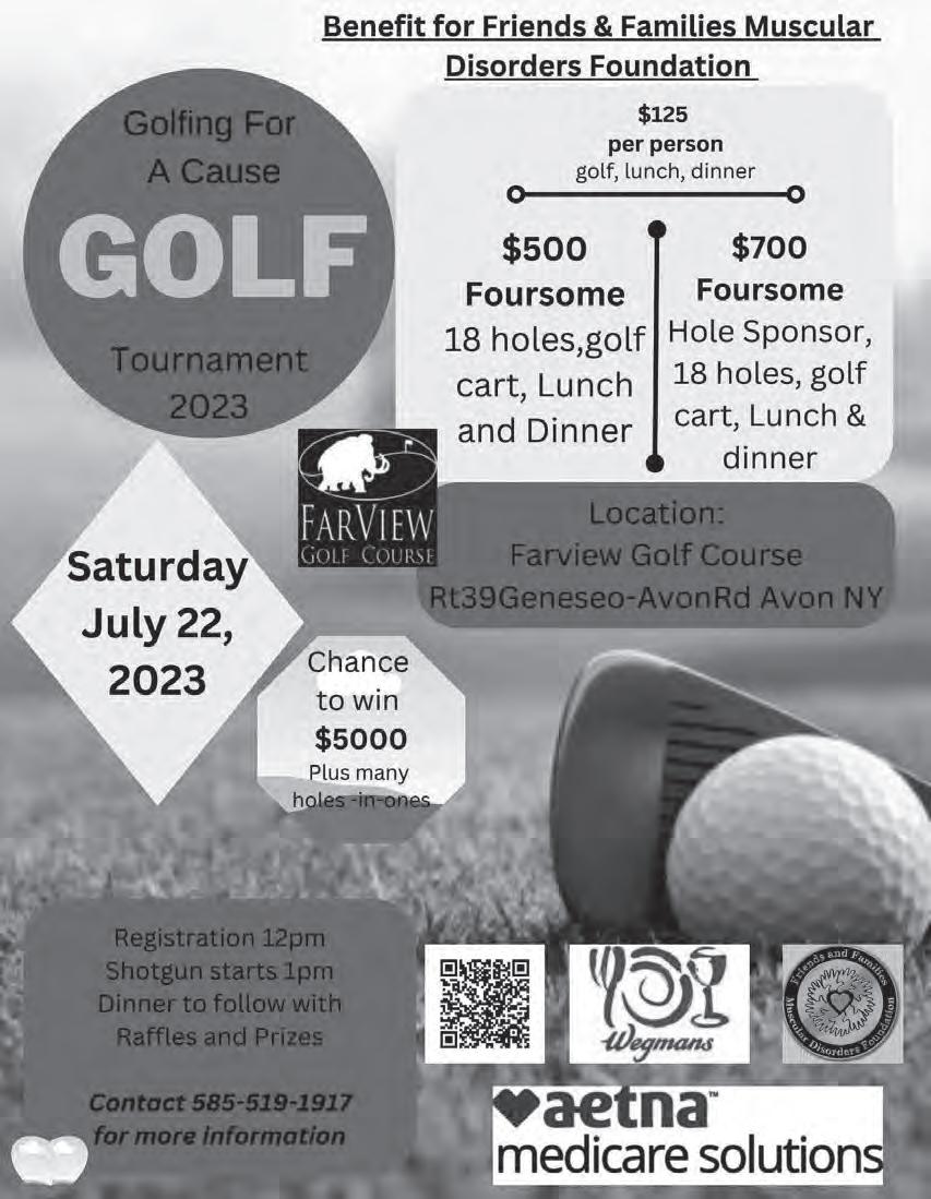 GENESEE VALLEY PENNY SAVER ● GVPENNYSAVER.COM 1-866-812-8111 Page2 LIVINGSTON EDITION ● FRIDAY,JUNE 23,2023 ActiveLiving50+ 31 Auctions&Antiques 20 Automotive 2 Body&Mind 35 Classifieds 50 Employment 42 GarageSales 6 Give&Take 30 HomeServices 10 HometownEvents 21 KidzKorner 38 Passages 26 PetPlace 40 PuzzleAnswers 19 RealEstate 32 Sip&Dine 2 Vibes&Rants 41 For boys & girls of all skill levels! FAMILY GOLF AT ITS BEST 1025 Rush Scottsville Rd., Rush, NY 14543 www.southernmeadows.com 585-533-2440 9 Hole Links Course • Full Length Driving Range • Practice Facility • PGA Instruction • Pub & Grille • Patio Great Food & Drinks at the Hospitality Pub & Grille! Eat in or take out. OPEN WOMEN’S Golf Clinic Scramble & BBQ Q SATURDAY 15 July Manic Monday Special! Golf 9 holes with cart: $16 Golf 18 holes with cart: $24 Must present coupon. Valid all day! Expires 7/3/23. $35 Includes: 8:00 Breakfast Spread Buffet, Check-in 8:30 Personal, Private Clinic! 9:30 Play Golf…9 Holes…Scramble Format 11:30 BBQ Cookout, Awards & Prizes OPEN TO EVERYONE!!! Stop by for our famous cheeseburger!