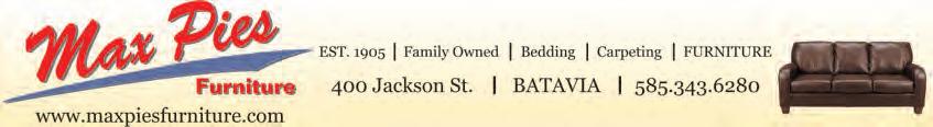 AFTER BEFORE Waterproo ng • Drain Tile • Sump & Backup Pumps • Crawlspaces Wall Crack Repair • Outside Entrance (Bilco & Gordon Doors) Stone Foundations • Structural Repair 585.765.3369 WATERSBASEMENTSERVICES.COM WATERS BASEMENT SERVICES, INC. Mention this ad for 10% OFF ANY SERVICE MILITARY always save 15% The only WATER that should be in your basement is BOB WATERS! Check out this BEFORE and AFTER! SALE SALE SALE SALE RestonicPlush RestonicPlush RestonicPlush RestonicPillowtop VisitourBedroomGalleryforallsizeMattresses&BoxSprings,Bedroom at our LOWEST PRICES!!! DELIVERY & FINANCING AVAILABLE ADJUSTABLE BEDS Mon.-Fri. 9am-5pm (appts. avail. 5pm-7pm), Sat. 10am-4pm, Sun. Closed *The Best Buy Seal and other licensed materials are registered certification marks and trademarks of Consumers Digest Communications, LLC, used under License. For award information, visit ConsumersDigest.com. SAVE UP TO TWIN SET $399 Fullset Queenset Queenset Kingset $499 $599 PLUSH $999 $699 PLUSH PLUSH PILLOWTOP MATTRESS Choose from Restonic, Corsicana, Spring Air, Pennsylvania Bedding AT www.maxpiesfurniture.com 585-431-0089 BROCKPORT, NY WWW.EZDUMPSTERBROCKPORT.COM Make Your Concrete Floor Look Better Than New! EPOXY FLOOR SYSTEMS • Garage Floors • Porches/Patios • Durable & Cost Effective • Non-skid Solid Color Coatings • Paint Chip Systems • Concrete Prep for DIY-ers • Concrete Grinding Call us for an estimate! Ryan Gonyea Builders Cell: 585-250-2741 Top prices paid for coins, gold jewelry, paper money, magic cards, and more! 394-3650 80 South Main, Canandaigua SMITTY’S COINS & CURRENCY “WE ARE” “BUYING!”