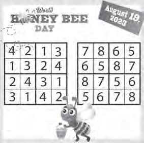 GENESEE VALLEY PENNY SAVER ● GVPENNYSAVER.COM 1-866-812-8111 Page7 OATKA EDITION ● FRIDAY,AUGUST 18,2023 FACTS #1 The number of bees in a colony can rise up to 80,000. #2 Fill in the free cells with numbers from 1 to 8, so that in each row, each column and a small square, the number occurs only 1 time.