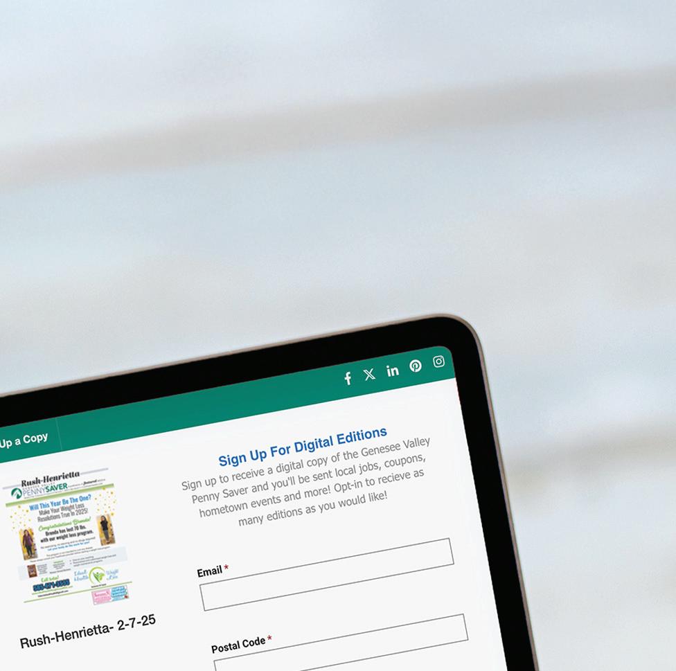 Log in and submit your event online at www.gvpennysaver.com/calendar or in person at: 1471 Route 15, Avon, NY 14414