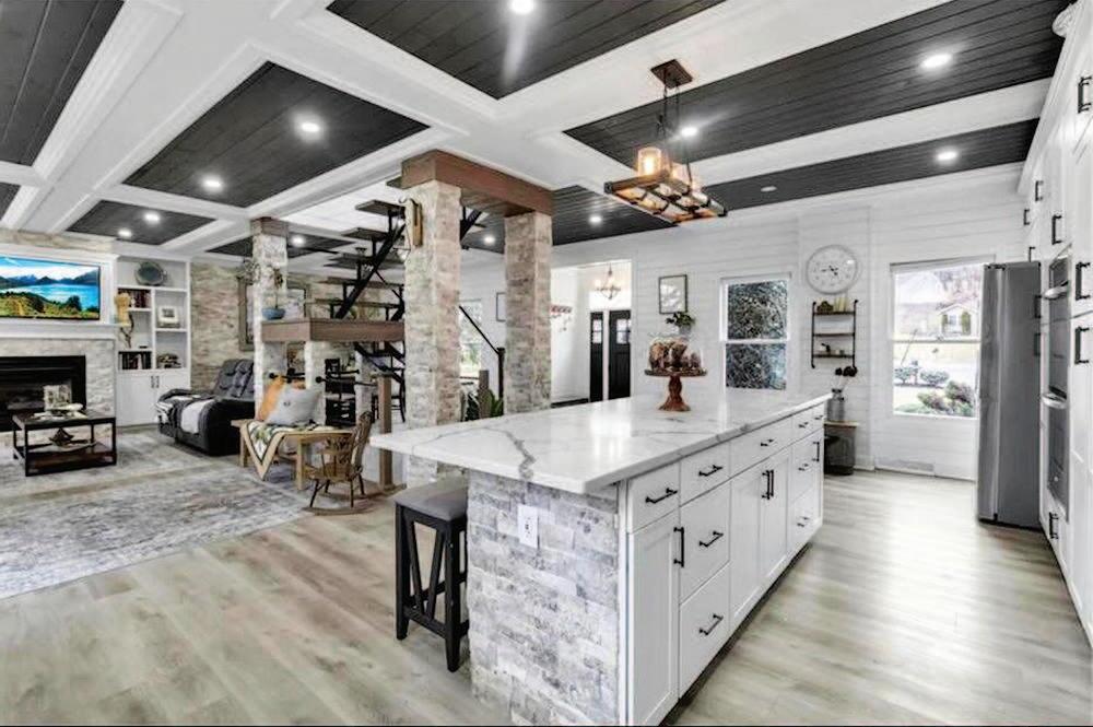When it comes to flooring, selecting the right material is crucial, especially in a lakehouse and more so one with pets. Amie highly recommends luxury vinyl tile (LVT) or luxury vinyl plank (LVP). Manmade materials that offer durability and affordability make them ideal for enduring spills and varying weather conditions without swelling or expanding.