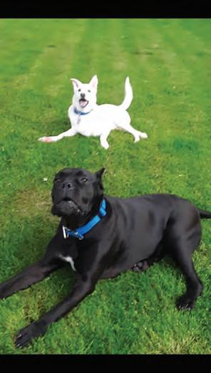 We both were rescues and our mom adopted us at different times, but we love each other a lot. We play all the time and love our walks. We even stick together when mom turns her head, and we sneak through the field to visit our neighbor. When we hear mom call us then we know fun time’s over and we have to go home.