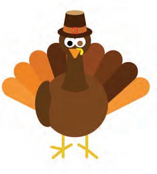 Our Thanksgiving tradition started in an e ort for all family members to play a game together, from the very young to the eldest of the group. I found some basic Thanksgiving-themed picture BINGO boards from the internet, broke out the colored pencils to give them some pizazz, and glued the boards on construction paper. 16 years later the tradition continues, with the same worn BINGO boards (including slight tears, faded construction paper, and water stains). Despite the tattered boards, kids and adults alike ask when we are playing BINGO on Thanksgiving Day to find out who will win the coveted prizes, which may include lottery tickets, small stu ed animals, candy, or mystery bags. This holiday tradition has become as important as the Thanksgiving parade, football, and turkey!