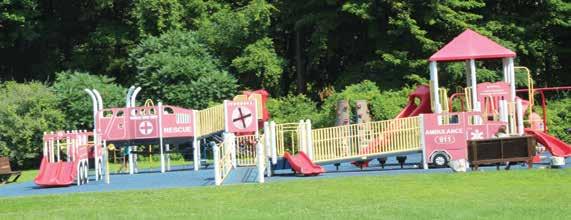 A one-of-a-kind sports complex for individuals with disabilities, Challenger Miracle Field at Ridge Park celebrates unity over differences. Fostering joy and togetherness as children and adults play, Challenger Field is a place where everyone belongs. The Challenger Miracle Field includes a rubberized cushioned fully wheelchair accessible turf surface, bases and pitching mounds painted onto the surface to avoid raised obstacles, and dugouts enlarged to accommodate wheelchairs and other apparatus. ADA-compliant concession stands, restrooms, and a pavilion with 12 wheelchair-accessible picnic tables designed and built by Webster Schroeder’s GeoTech class make an inclusive space for families and friends to enjoy life without barriers. The Karpus Family Playground provides a fully accessible sensory-rich play space for children with and without disabilities to play alongside each other.