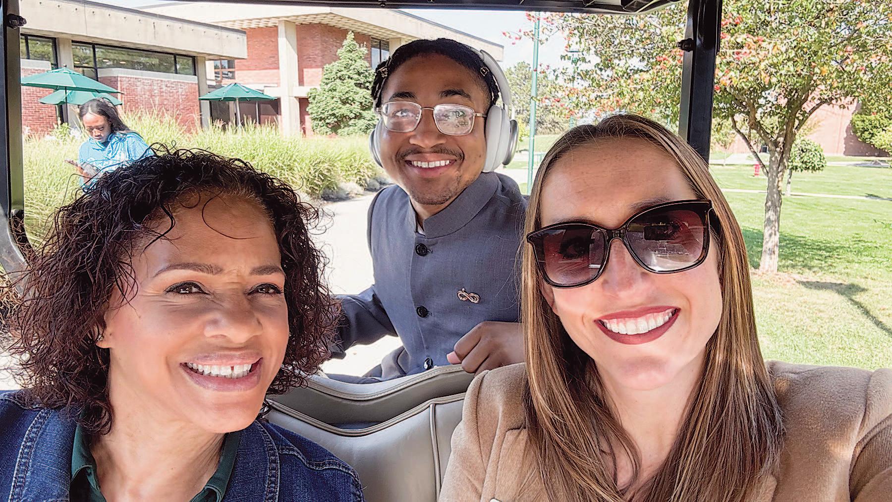 In 2024, SUNY Brockport’s Vice President for Enrollment Management, Sara Kelly, began the Random Acts of Kindness program. Once a month, she and one of the division’s directors travel around campus to surprise students with kind gestures such as golf cart rides to class, donuts, merch, or even photo ops with Ellsworth. “The program was inspired by the fun and energetic atmosphere of orientation,” Kelly said. “We wanted to find a way to spread kindness and brightness into the lives of our students throughout the year. Students really love it. It’s a fun way to engage.”