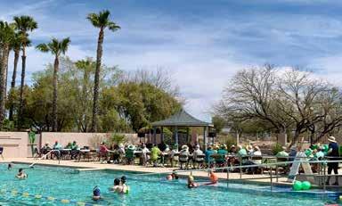 Cooler early mornings are ideal for strolling the walking track near the Del Sol Clubhouse, exploring the paths at Historic Canoa Ranch, or enjoying a quiet moment at Desert Meadows Park. Try shuffleboard at Abrego South, Casa Paloma I and II, Madera Vista, and West Center. Abrego South and Casa Paloma I also have horseshoes. Water aerobics is offered six days a week at seven centers.