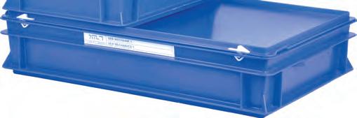 ► Dėžės yra tvirtos konstrukcijos, pagamintos iš polipropileno, jas galima sukrauti vieną ant kitos, turi pakeičiamus dangtelius.