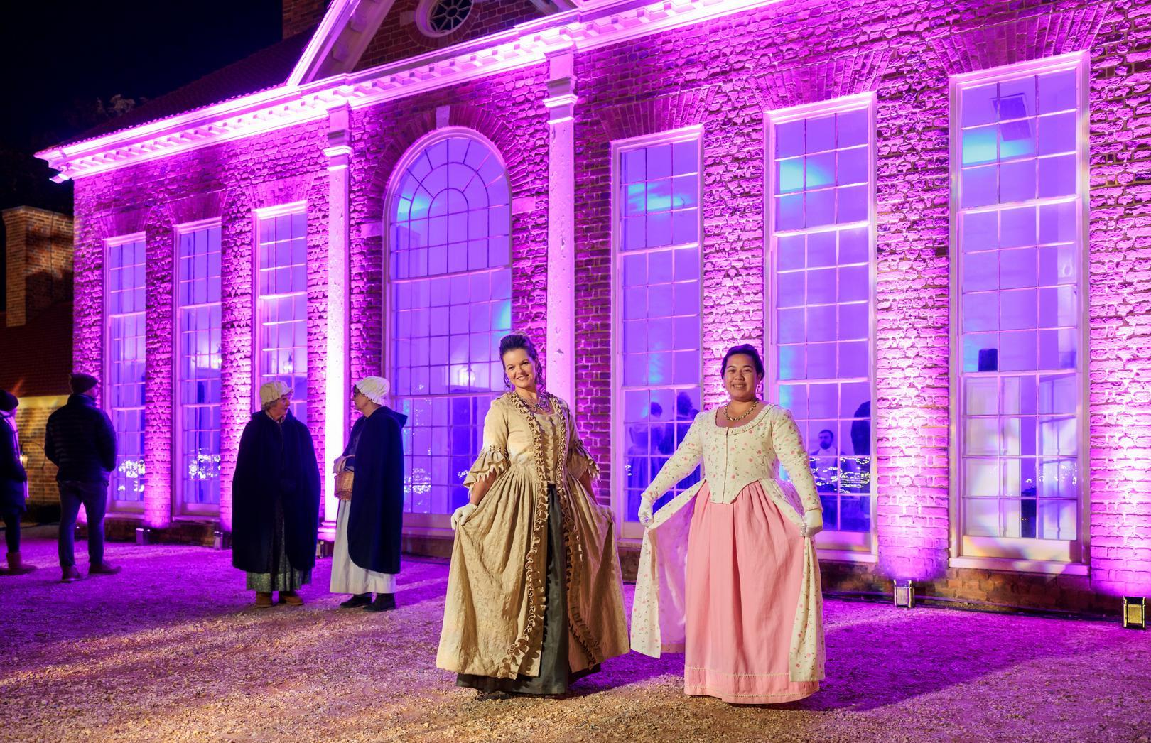 The Historic Trades staff leads 18th-century dancing during our public events, such as Revolutionary War Weekend, Mount Vernon by Candlelight, Winter Glow, and Christmas Illuminations.