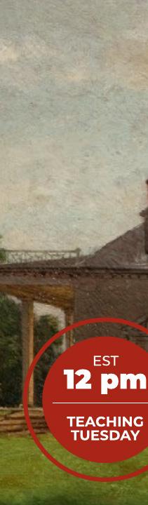 Each program offered in 2020 was rooted in the successful foundations of our George Washington Teacher Institute on-site programs (deep content, practical classroom application, and immersive historical experiences). Content-rich lectures were enhanced with robust Q&A sessions in video conferencing chats. Primary sources, normally paired with direct access to the Mount Vernon estate, were paired with guided virtual tours. Mount Vernon’s K-12 education team created a variety of digital programs to help teachers find resources and increase their own content knowledge of the 18th-century world of George Washington. Seven program series were hosted between March and December, ranging from monthly hour-long happy hours, to an in-depth three-day symposium focused on Slavery in George Washington’s World, to multiweek lecture series with leading scholars. Each of these programs allowed our staff to bring content, compassion, and resources directly to more than 900 educators from 47 states, as well as Puerto Rico and Washington, DC.