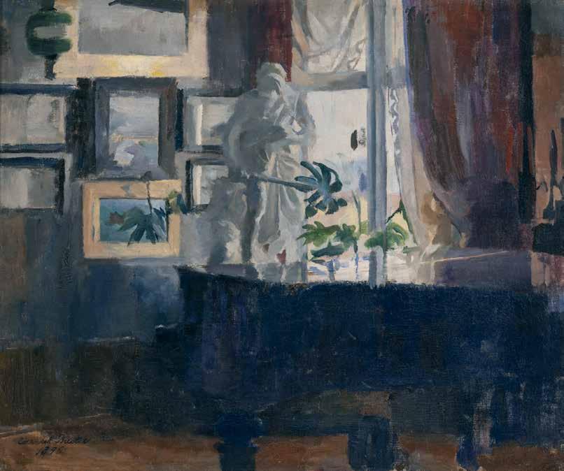Backers maleri Interiør fra slottsforvalterboligen 1896 føyer seg inn i en rekke av interiører hvor klaveret er en sentral del av komposisjonen. Interiøret er malt fargerikt og med frie penselstrøk. Dagslyset flommer inn og gir liv til planter og øvrig interiør. Likevel er det klaveret som trekker blikket vårt innover i motivet, og fremkaller fantasier om lyd og klang.