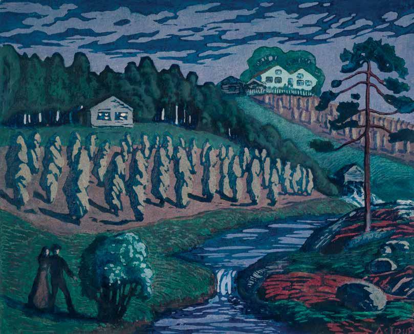 FRA PARIS TIL EGGEDAL I 1894 flyttet Skredsvig til gården Hagan i Eggedal, hvor han skulle tilbringe resten av livet. Her fant han inspirasjon i det lokale landskapet og folkelivet, og mange av hans mest kjente verk er malt i og rundt Eggedal. Men Skredsvigs tilknytning til Eggedal handlet ikke bare om malerisk inspirasjon, men også om en dypere forståelse for bygdelivet. Han ble en viktig kulturformidler og bidro til å synliggjøre den norske bond-
