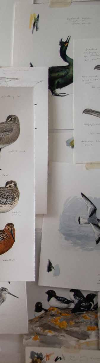Grunnen til at boken har fått så fine anmeldelser, og det som skiller den mest ut, tror jeg likevel er illustrasjonene. Jeg har samlet feltskisser, tegninger, malerier og detaljerte akvareller for å gi et variert bilde av hvordan jeg ser fuglene. Designer Kristine Lillevik har klart å sette sammen materialet på en måte som gjør boka levende og interessant. En så omfattende og samtidig gjennom-illustrert fuglebok har aldri blitt laget i Norge. I Sverige har Lars Jonsson laget lignende bøker som har vært til stor inspirasjon for meg, så det er veldig motiverende når en svensk anmelder skriver om Kystfugler at: «Något liknande har vi inte sett i Norden sedan Lars Jonsson slog igenom för ett knappt halvsekel sedan.» (Torgny Nordin i Birdlife Sveriges tidsskrift Vår Fågelvärld 5. 2024). Det blir spennende å se reaksjonen på den svenske utgaven!