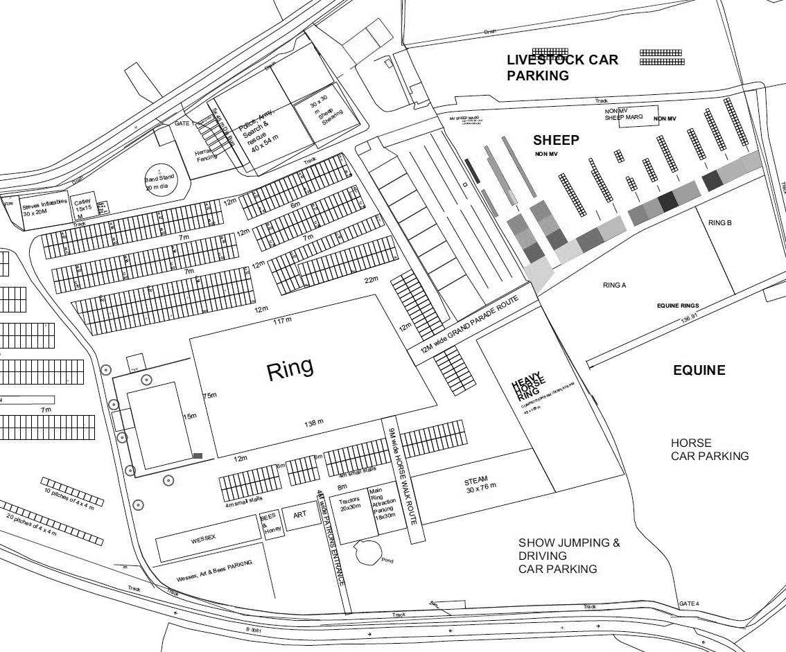 Except for Heavy Horses all Equine is to arrive through Gate 4, located on the B3081 (circled bottom right on the above map).