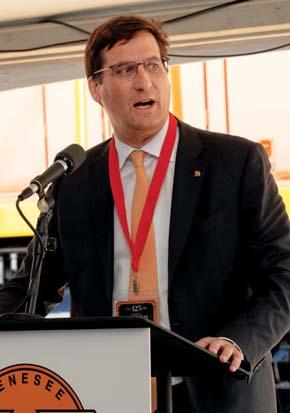 Despite the threat of rain, the sun shone brightly at Rochester & Southern Railroad’s (RSR) Brooks Avenue yard in Rochester, New York, on Thursday, May 9, as G&W celebrated the company’s origins as a small 14-mile railroad hauling salt from a single salt mine in Retsof, New York.