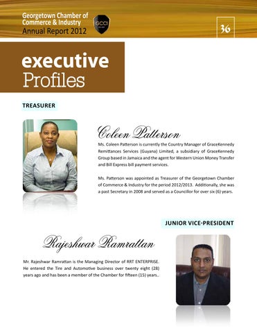Ms. Patterson was appointed as Treasurer of the Georgetown Chamber of Commerce & Industry for the period 2012/2013. Additionally, she was a past Secretary in 2008 and served as a Councillor for over six (6) years.
