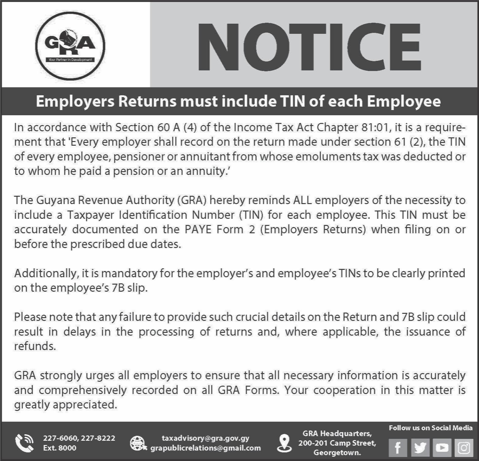 Despite this inflated customs declaration, one of immense magnitude, and many implications, theAmerican company is taking its own sweet time to provide a persuasiveresponsetotheGRA,andbringingsomelevelof closure to this transfixing issue. In addition to blaming the broker, the Americans came up with a peculiar one: there was a conversion mix-up, in that the declaration should have been in Guyana dollars. Holding fast to the US$4.4 million cost and using a rate of US$1 = GY$220, the final amount is still miles (many countless miles) from that US$12.1billionsubmittedinthefalsedeclaration. Couldit be that the US company devalued the Guyana dollar, and it is only now that the Guyanese people are being informed? This false customs declaration is also confirmation of how theAmericancompanyhasgonenative,sotospeak. Inthis country,politiciansblamethepublicserviceandthemedia, while the public service passes on the favor to the people. On the other hand, the independent media has no one to drop the hammer on, so it just keeps digging and reporting, and there is this GRA scandal involving a broker and a nationalpartner Toconfirmourpointaboutblamedodging and blame shifting, there is the company dumping the hot potato false declaration on the broker, and the broker saying,nothanks.