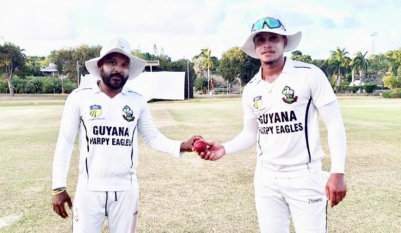 Veerasammy Permaul (18) and Nial Smith (13) are leading the Guyanese bowling this season