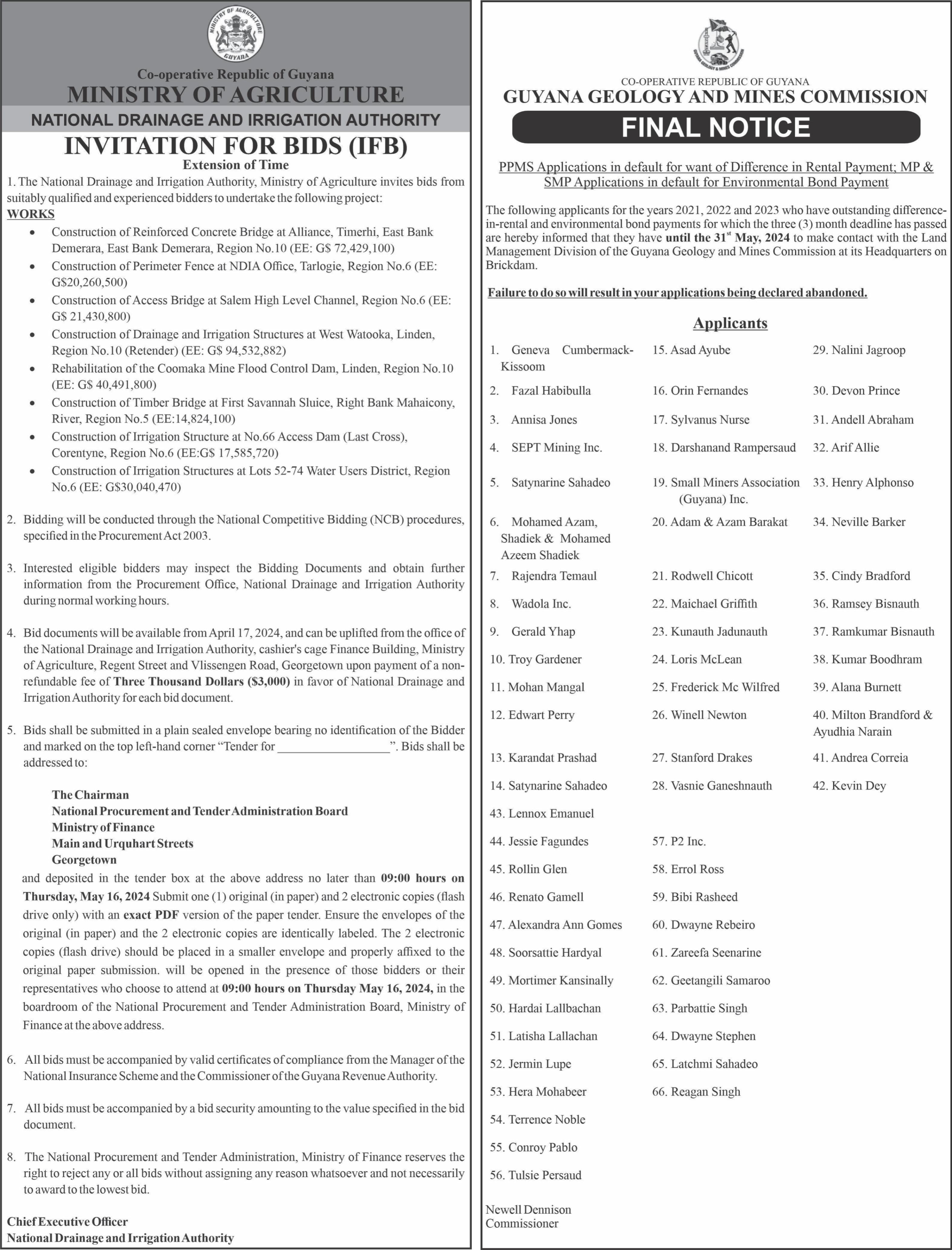 materials for embankment againstfloodinginRegion6. A popular firm was sole sourced for materials for $296,412,480 00 from N D I A , M i n i s t r y o f Agriculture. (NPTAB No: 129/2024/21.)