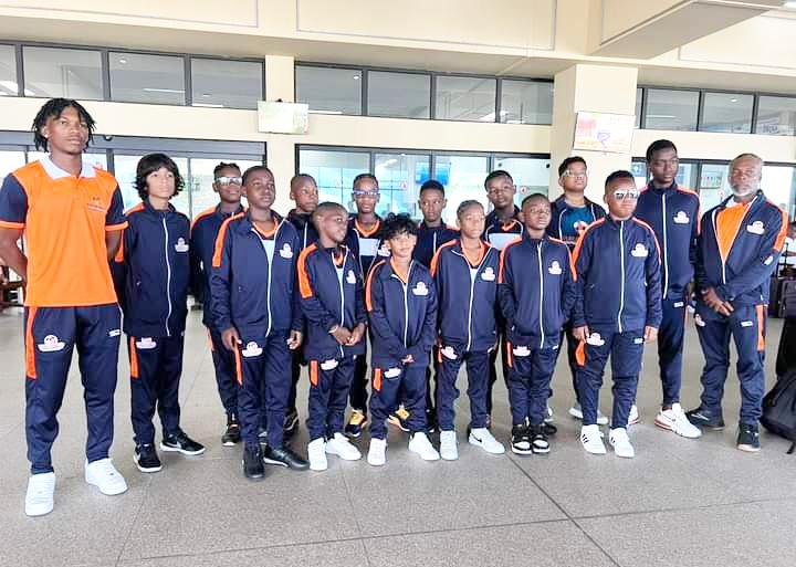 Vurlon Mills FootballAcademy U12’s at the CJIAyesterday ahead of departure to Port of Spain.