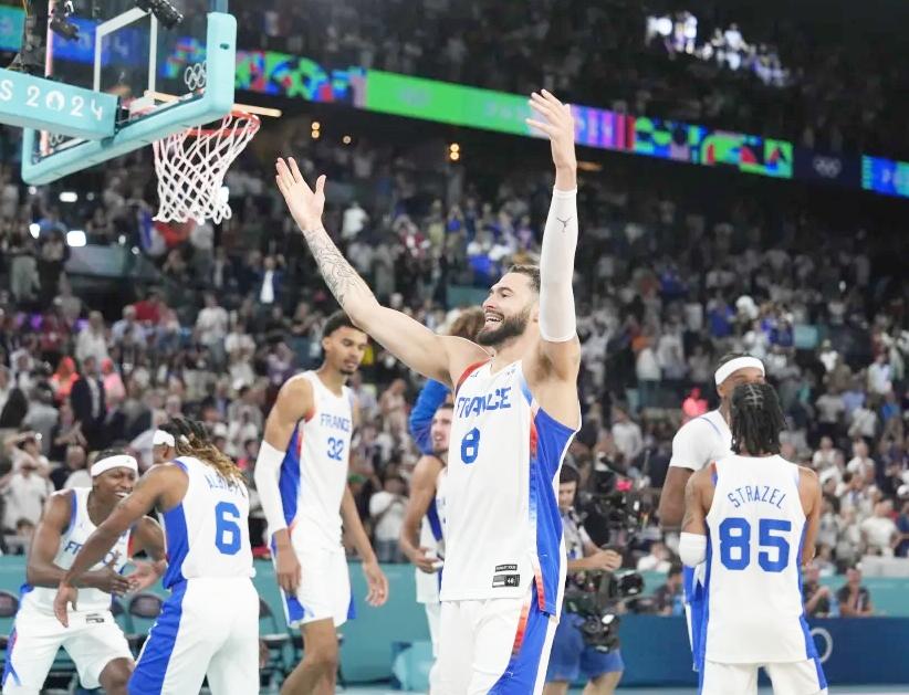 The victory sent the crowd into a frenzy as France celebrated After a postgame handshake with theirGermanopponents,the entire team ran to the baseline and saluted the crowd — which seemed to get louder to acknowledge thetribute.
