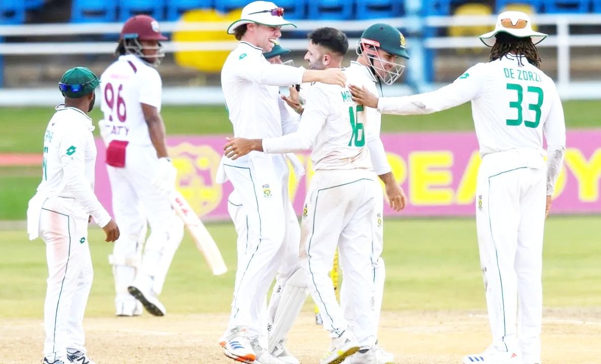 Keshav Maharaj bowled 28 overs, unchanged, from the Media Centre end. (AFP/Getty Images)