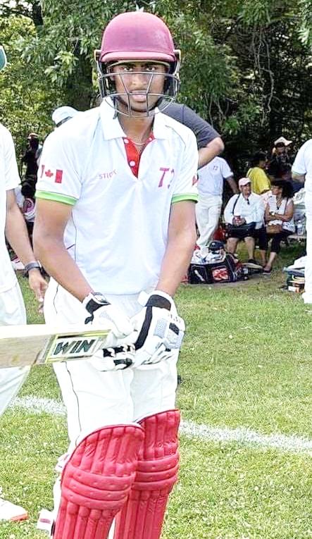 JaffarSamad,thesonof former Canada player and Canada-based Guyanese Abdool ‘Bird’Samad, hit a stroked-filled 66 to inspire Superstar Colts A to a comprehensive, 148-run win over Mississauga Dolphins last Saturday when action continued in the Toronto and District