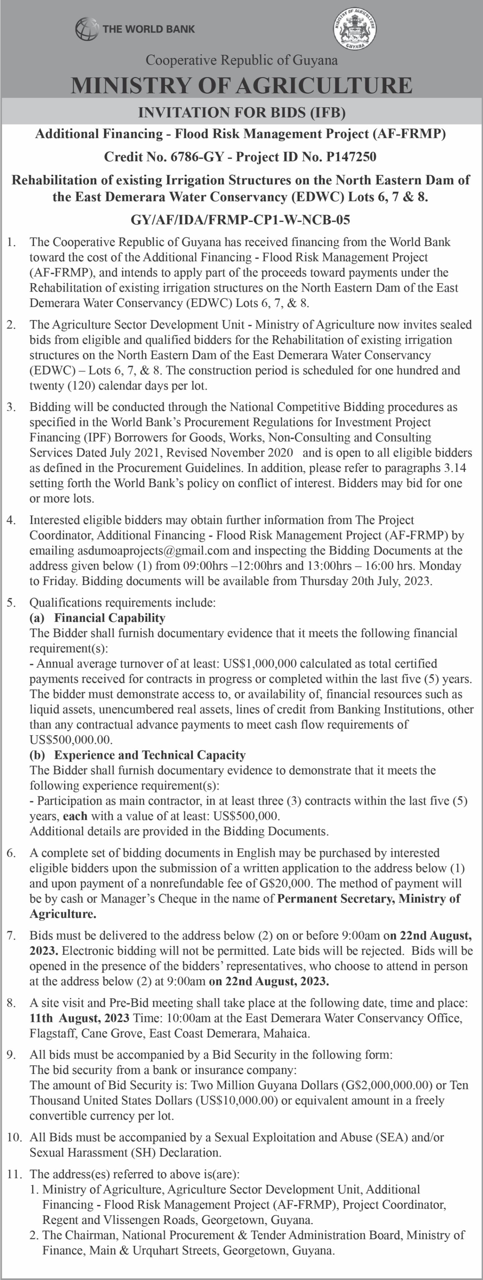 Be that as it may, the application did not include or provide any proof of ownership, a lease or other agreement with the land ownersofthesaidarea. Notwithstanding, the EPA granted EEPGL a Permit to undertake the project on November 25, 2022. Subsequently, the Minister of Public Works, JuanEdghillinJanuary2023 passed various orders to acquirelandsforthepurpose oftheproject,pursuanttothe Acquisition of Lands for Public Purposes Act, Chapter62:05.