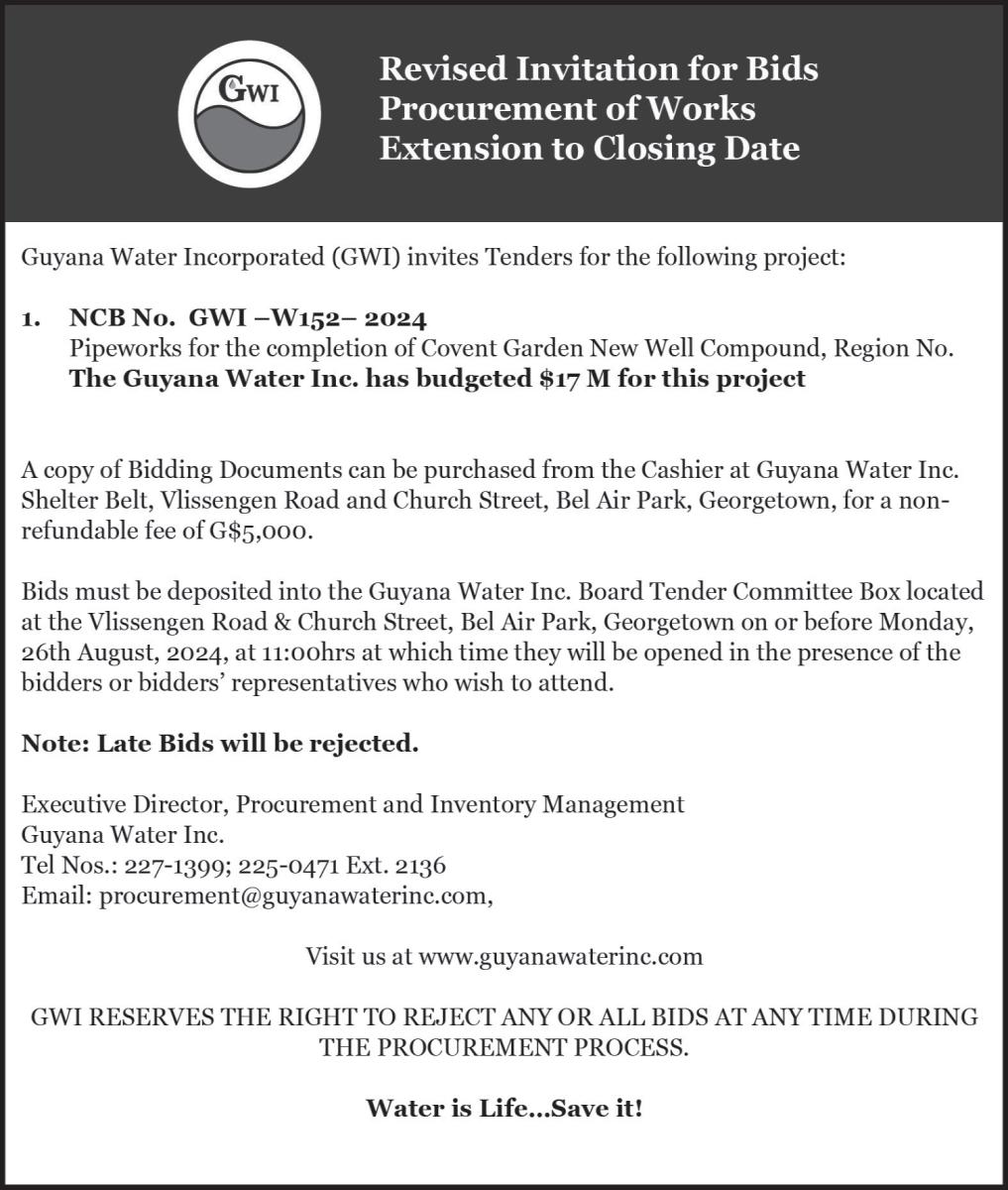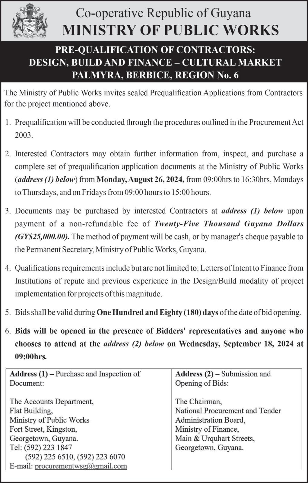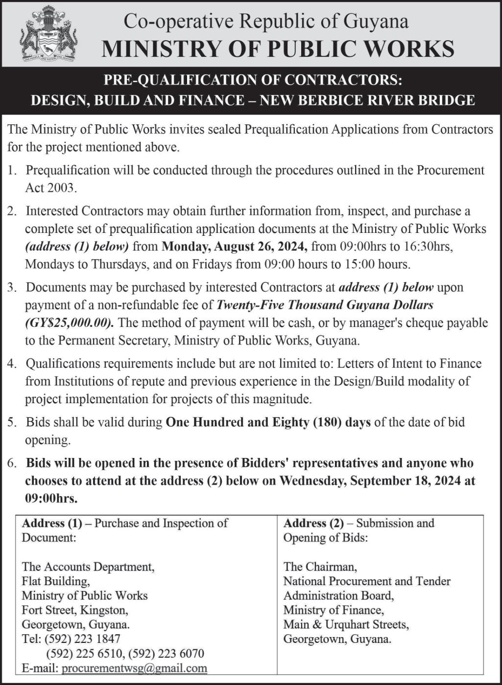 T h e m i n i s t r y ' s advertisementstatedthatthe Government of Guyana (GoG) has received financing in the amount of US$20 million from the World Bank (WB) towards the cost of the Guyana