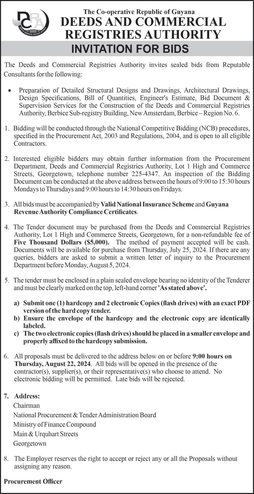 Consultant to provide advisory services, technical support and training and capacity strengthening services to the government, through the Ministry of Natural Resources, and the Sector Regulator – the GuyanaGeologyandMines Commission (GGMC) or the Petroleum Commission (PC)onceestablished–and other attendant Ministries with the aim of enhancing the country's core capacity to review, approve, authorise, and oversee, monitor and report on the country's oil and gas reservesandresources.