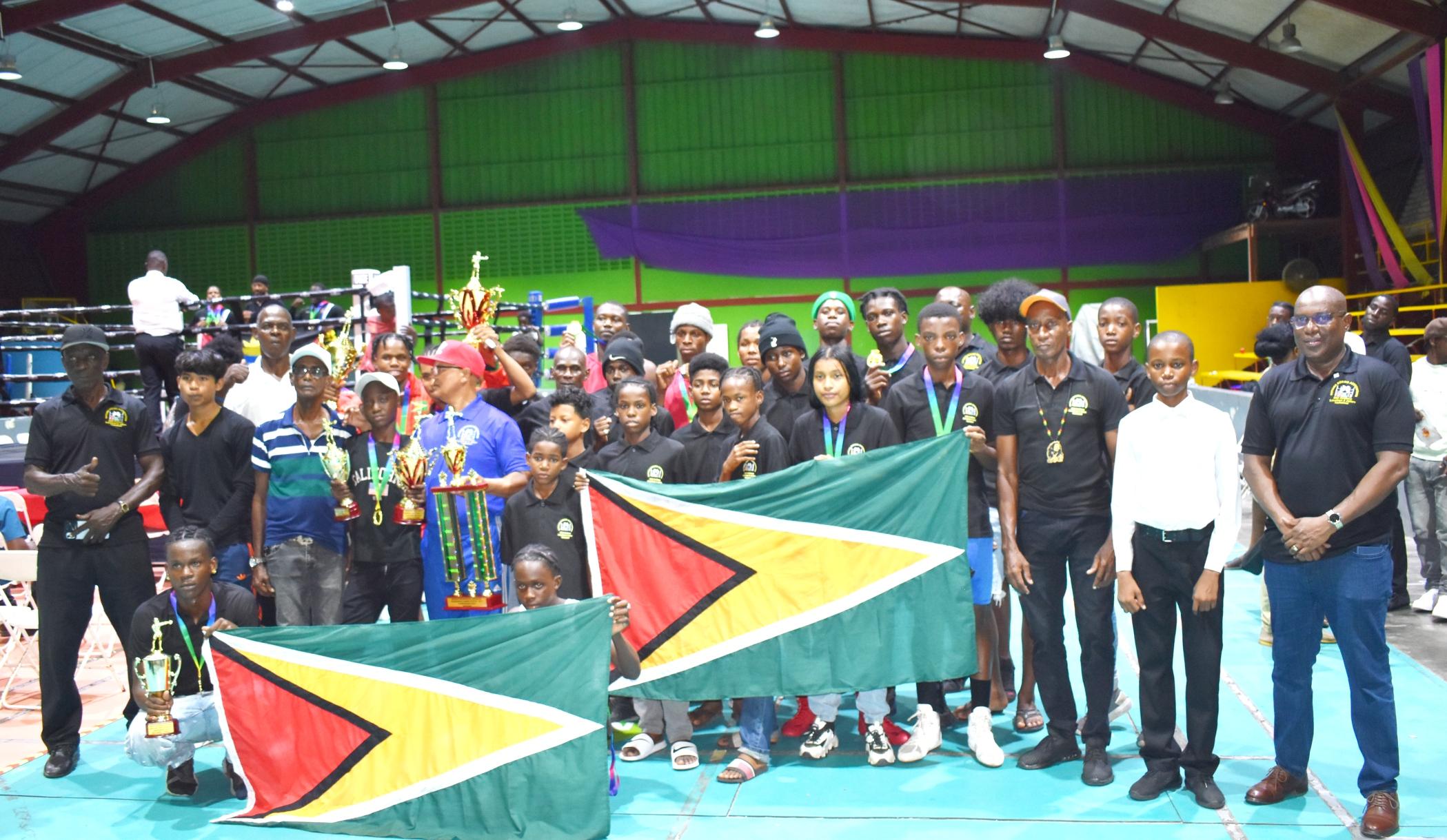 Guyana’s Chance Niles, Ezekiel Bancroft, Ken Harvey,andcompanyledthe host to their seventh Winfield Braithwaite Caribbean Schoolboys’ and Girls’BoxingChampionship title on Sunday The tournamentconcludedatthe National Gymnasium, with an enthusiastic crowd