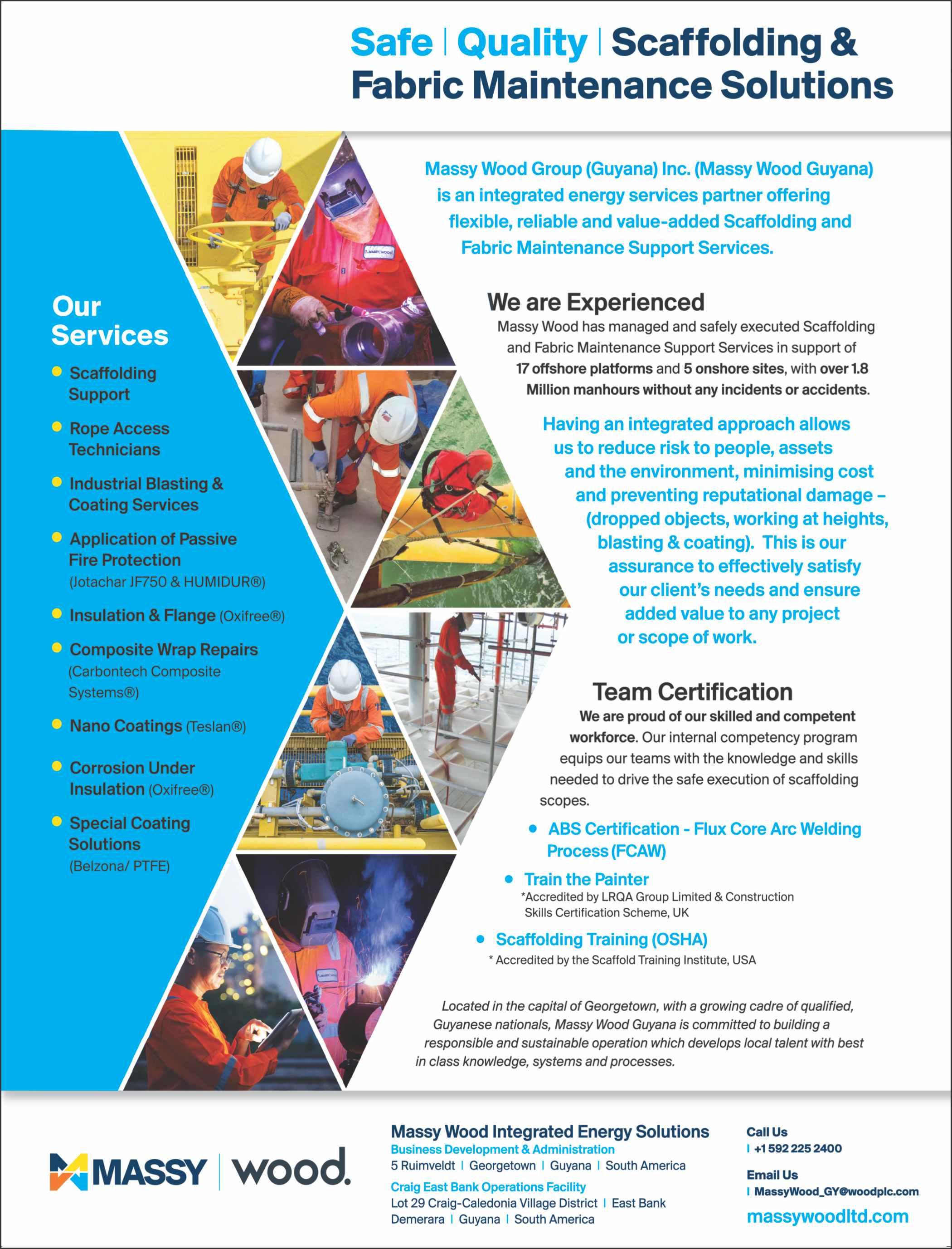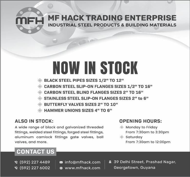 Tothisend,thePresident ofthecompanynotedthathe is optimistic of the government’s support, pointing to the recent passage of the Single Window Bill; which paves the way for hassle free construction permits and other regulatory approvals for investors. According to him,suchmeasures“makeit much easier to secure construction permits and generally do business in Guyana.”