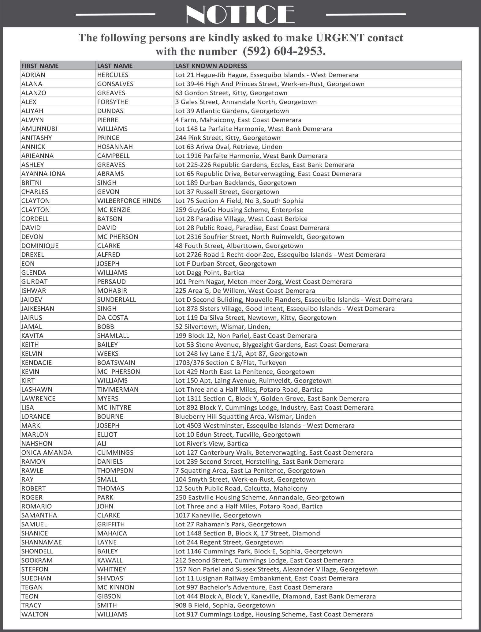 later found abandoned. The car's window screen was damagedwhenitwasfound. While the police have been so far unable to apprehend the suspect, Harry'srelativeslatercarried outtheirowninvestigations. They discovered that the car involved in the accident is registered to someone in Berbice However, that individual is contending that he sold the car to another individual.