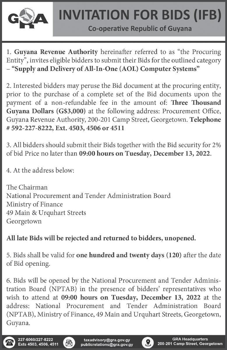 Back inAugust, Kaieteur News had reported that eight contractorshadplacedbidsat the National Procurement and Tender Administration Board (NPTAB) office for