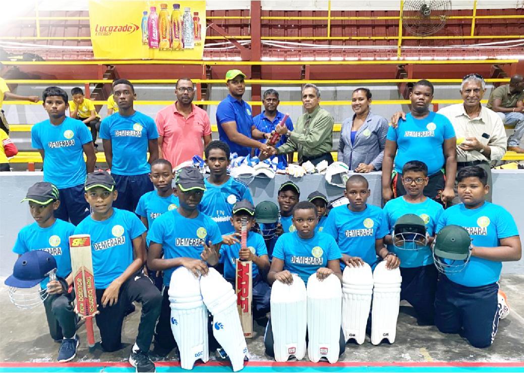 The Guyana Cricket Board (GCB) today donated a set of under-13 cricket equipment to Demerara and Essequibo at the national Gymnasium.