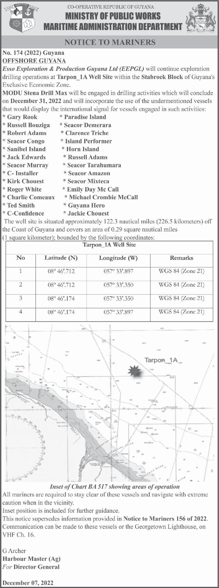 Exxon and its co-venture partners, Hess Corporation and CNOOC Petroleum Limited currently have four sanctioned developments on theStabroekBlock.