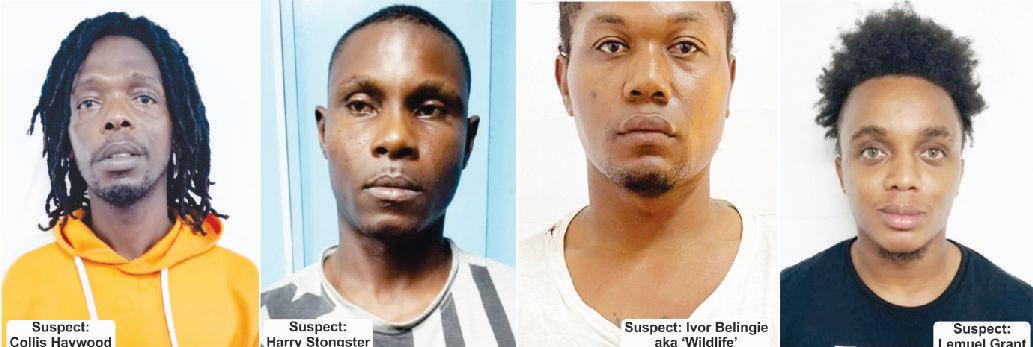 Georgetown, 35-year-old Joshua Junor, Kaieteur News Security Guard of Middle Road, La Penitence, 25-yearold Ivor Belingie called 'WildLife' of Back Circle, East Ruimveldt, 23-year-old Lemuel Grant, a clerk of Russell Street, Charlestown and 36-year-old Harry Stongster of Hyde Park, Timehri, East Bank Demerara(EBD).