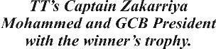 TT took home the first-everBilateral/Goodwill for the second consecutive with the ball registering and off-spinner Richard harsh,wetconditions. winning trophy for the 3-1 series played between the match with 15, while Rayaz figures of 4 for 9 off six Ramdeholl continued to At the end of the match, series triumph in the four- twoteams. Latiff made 14, and overs, while leg-spinner bowl economically, TT spinner Shaan Ramtahal