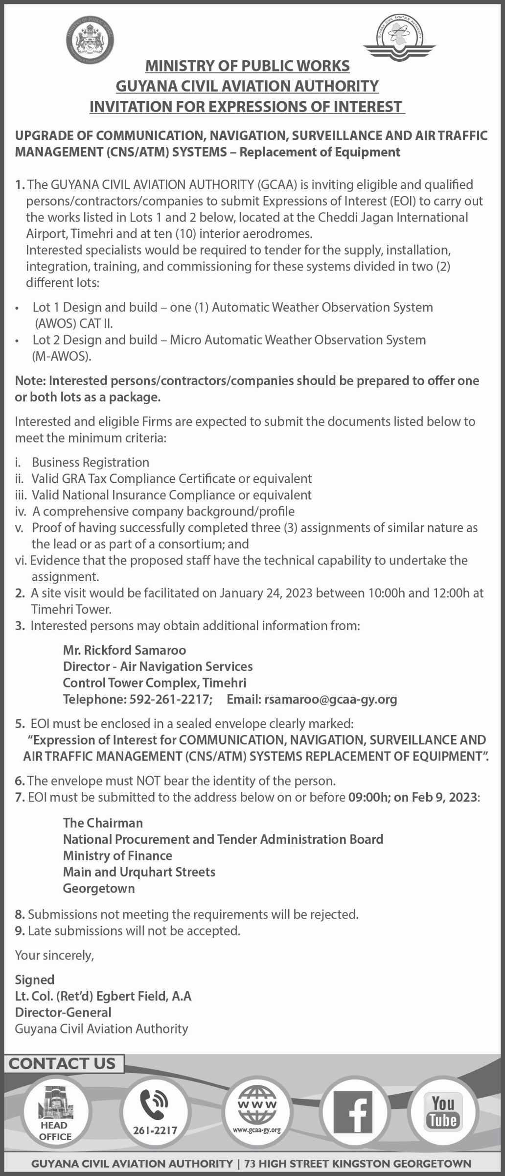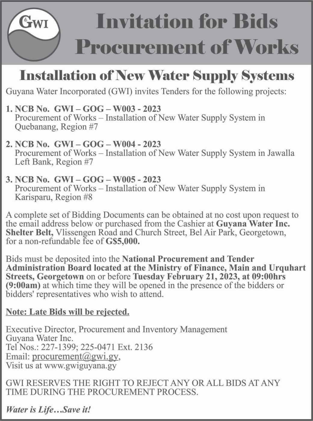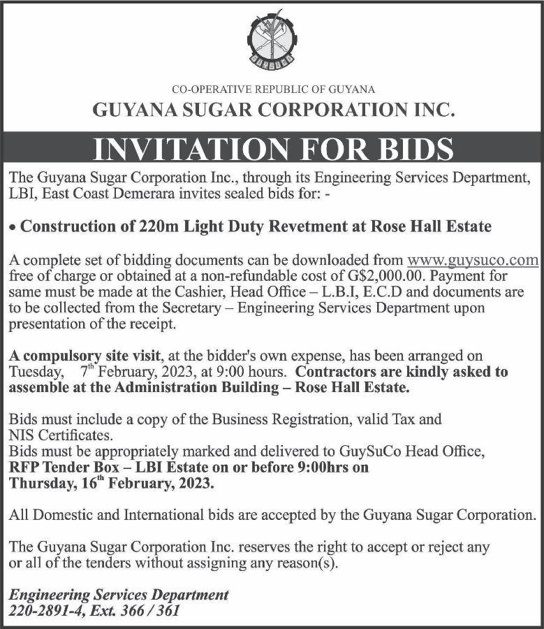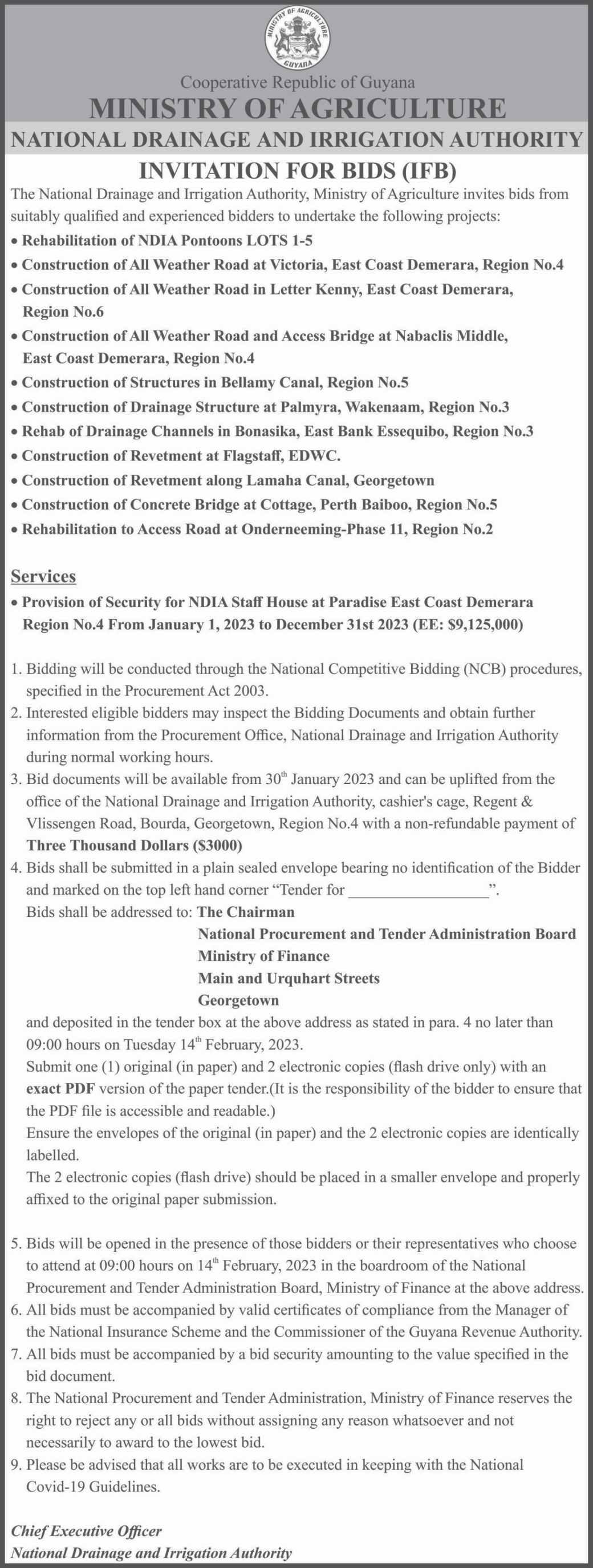 DEAREDITOR, C o n t r a c t o r s ’ transgressions from failure to start contracted works to inferior quality construction (e.g., ‘Edghill terminates El Dorado Road contract -after contractorfailstostartwork’ , SN, Jan 14, 2023, ‘Likely poor design caused crumbling of Burma Road”, KN, Jan 11, 2023; ‘Tenders for security services and others’, KN, Jan 27, 2003, ‘Poor work being executed on the Parika-Hubu road’, SNOct12,2022)continueto p l a g u e t h e m a n y t r a n s f o r m a t i o n a l infrastructural works undertaken by the PPPC government. Why do these transgressions, described in the Auditor’s reports 2019, 2020 (projects under the previous government), almost weekly media reports, letters from professionals and citizens in newspapers, citizen and Governmentofficials’verbal complaints captured on video footages and distributed on social media, continueunabated?