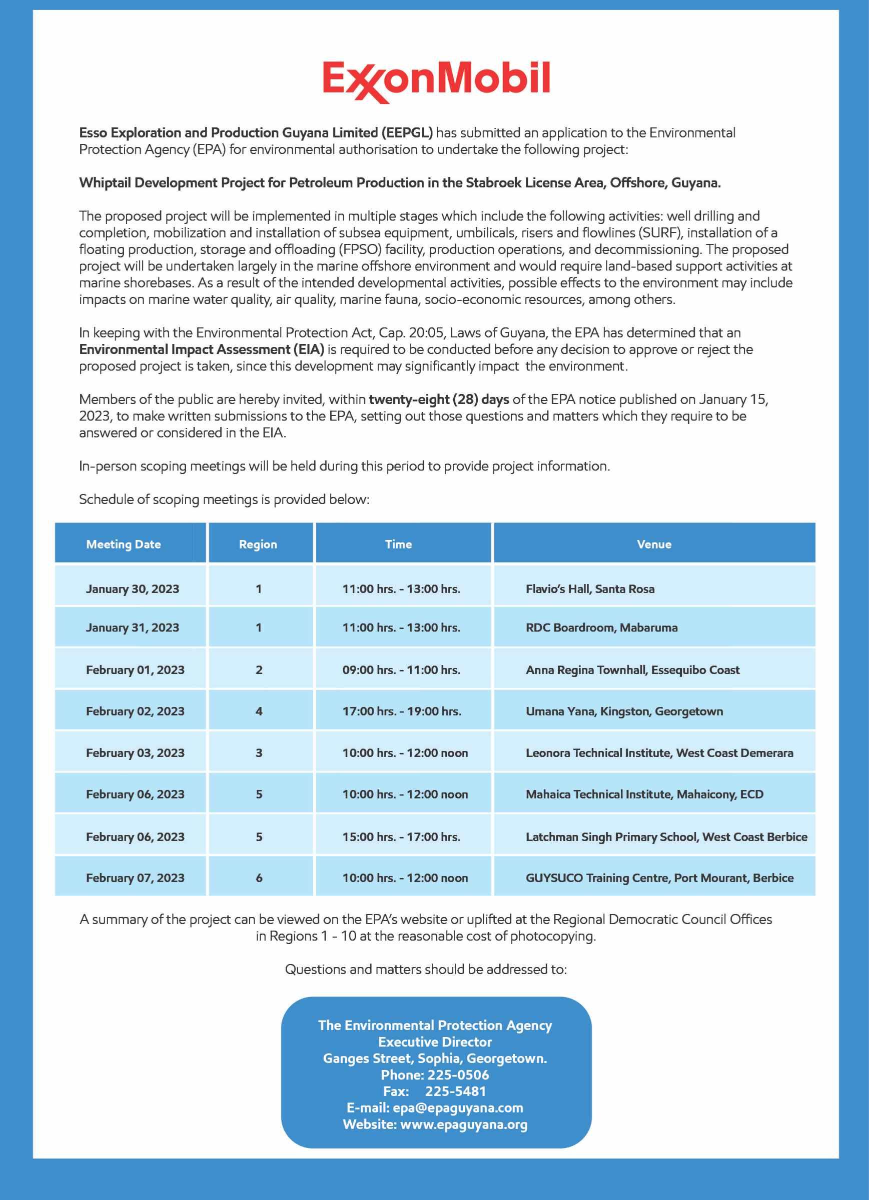 A sixth development at the Whiptail field is already before Guyanese authorities for review Scoping consultations on that venture willkickstarttoday