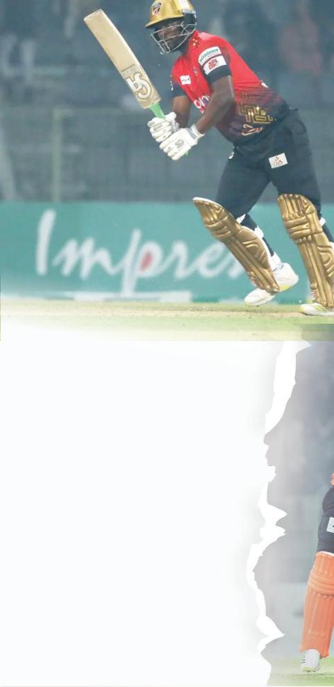 The Tigers took first strike after the Victorians won the toss and elected t o f i e l d f i r s t , a decision that looked lik e th e r ig h t o n e w h e n M a h m u d u l H a s a n J o y w a s d i s m i s s e d b y P a k i s t a n i p a c e r Naseem Shah in the third overwiththescoreon13. That wicket brought Tigers skipper Shai Hope to the crease alongside Tamim Iqbal and the pair put on a T20 batting masterclass, blastingtheComillabowling all over the Sylhet International Cricket Stadium.