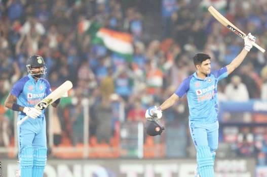 Gill smashed 126 from only 63 balls to help India reach234-4inAhmedabad.