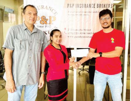 Georgetown, Captain Bhudu and Director of the Foundation, Mr Andrew P h a n g , m e t w i t h representatives of P&P Insurance Brokers and Consultants Limited for t h e h a n d o v e r o f sponsorship funds and in accepting the kind sponsorship, conveyed thanks to the Executive Director of P&P, Mr VikashPanday