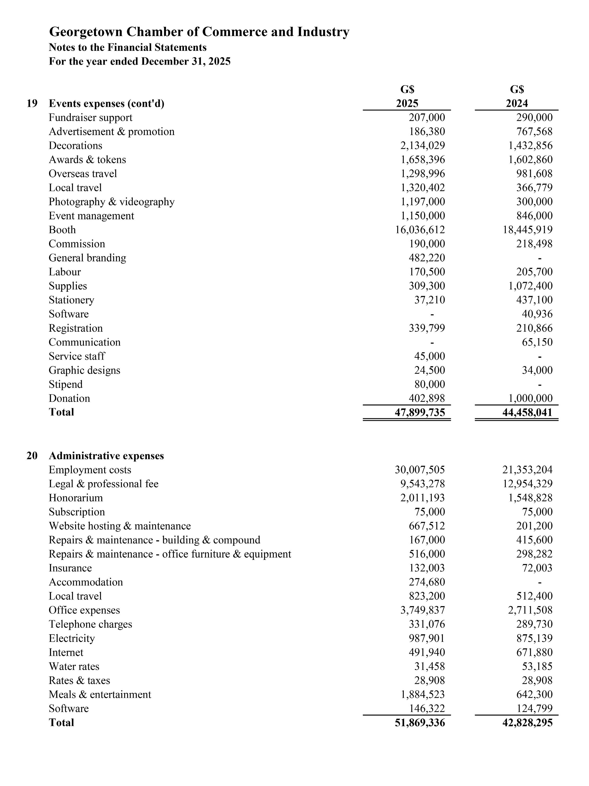 Event-related expenses increased by $3.4 million (7%), consistent with the growth and success of the Chamber’s major engagements. Administrative expenses increased by $9.7 million (18%), primarily due to strategic investments in strengthening the Chamber’s Secretariat. In order to better serve the Chamber’s expanding membership and the wider business community, the Secretariat team was expanded during the year. As a result, the net increase between employment costs and professional fees amounted to $5.2 million (15.2%) compared to 2024. This investment reflects the Chamber’s commitment to building the institutional capacity necessary to support its advocacy, policy engagement, and growing programme portfolio.