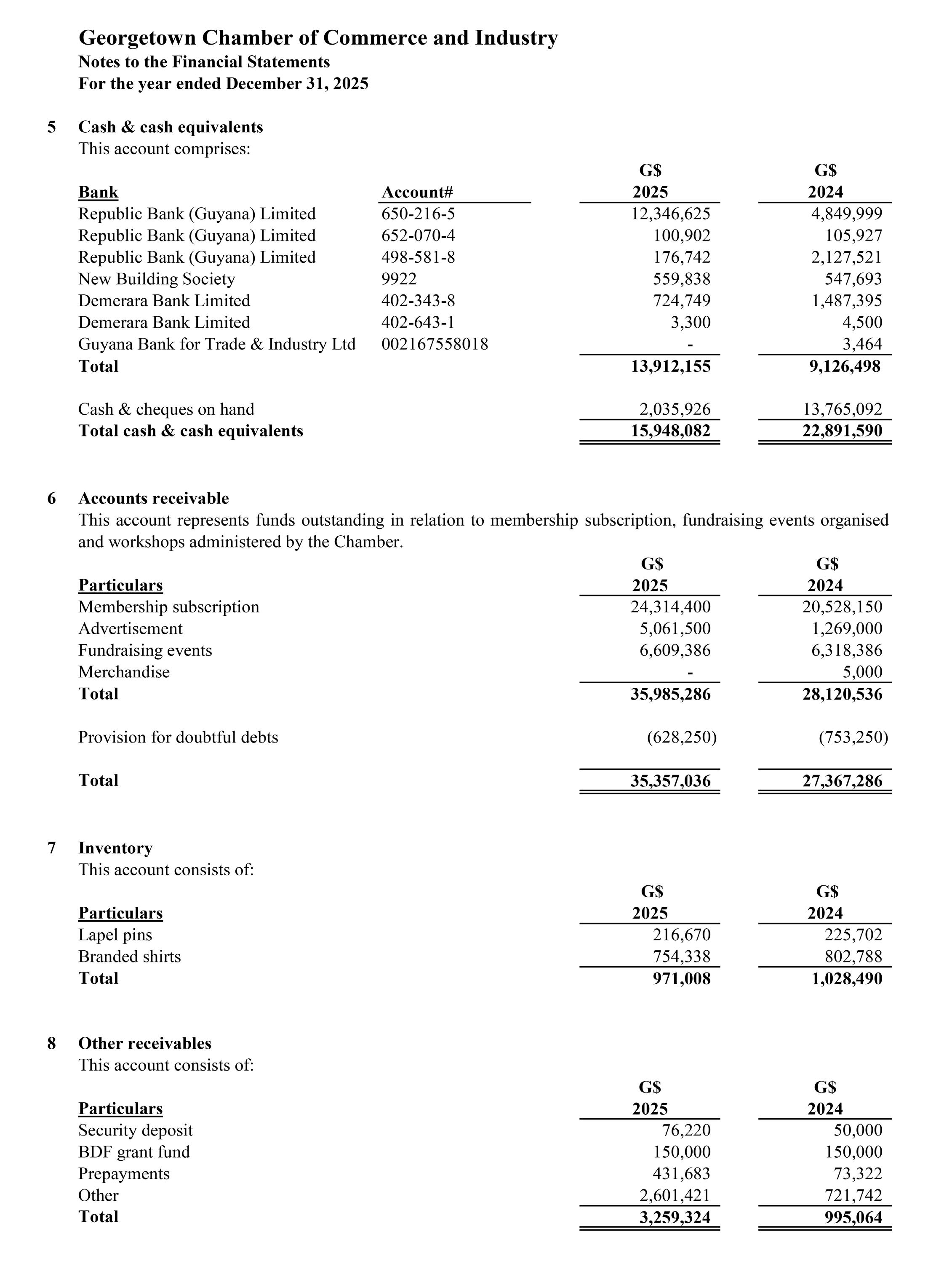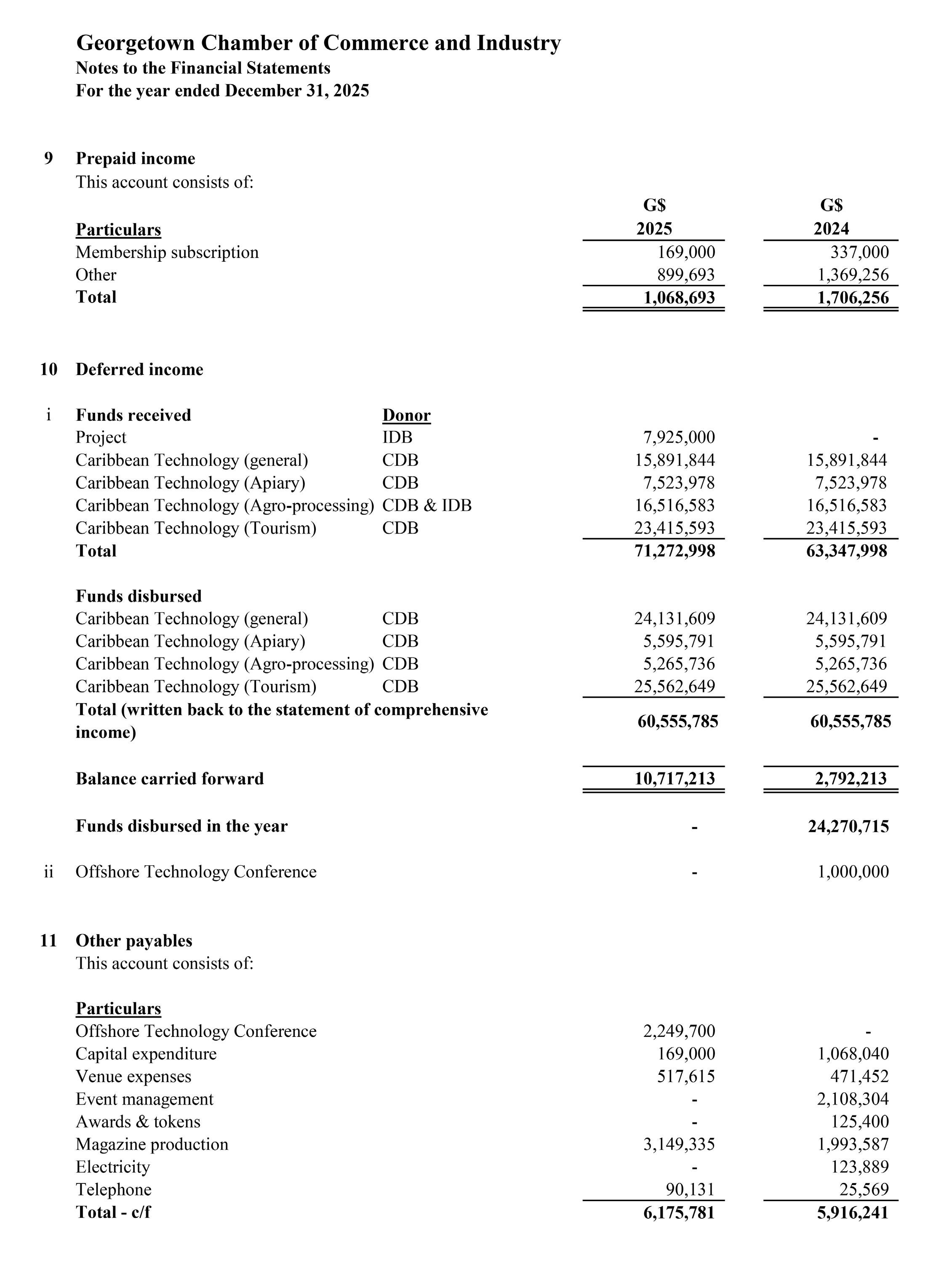 During the year 2025, the Chamber and IDB signed an agreement that will support the implementation of the Chamber’s Agriculture Accelerator Programme. Funding of $10.425 million was received in 2025 and it will be utilised to facilitate training workshops, capacity-building sessions, mentorship activities, and market linkage initiatives aimed at strengthening small and medium-sized agroenterprises. The programme is designed to enhance business management skills, improve productivity, support value-added production, and expand market access for participating enterprises.