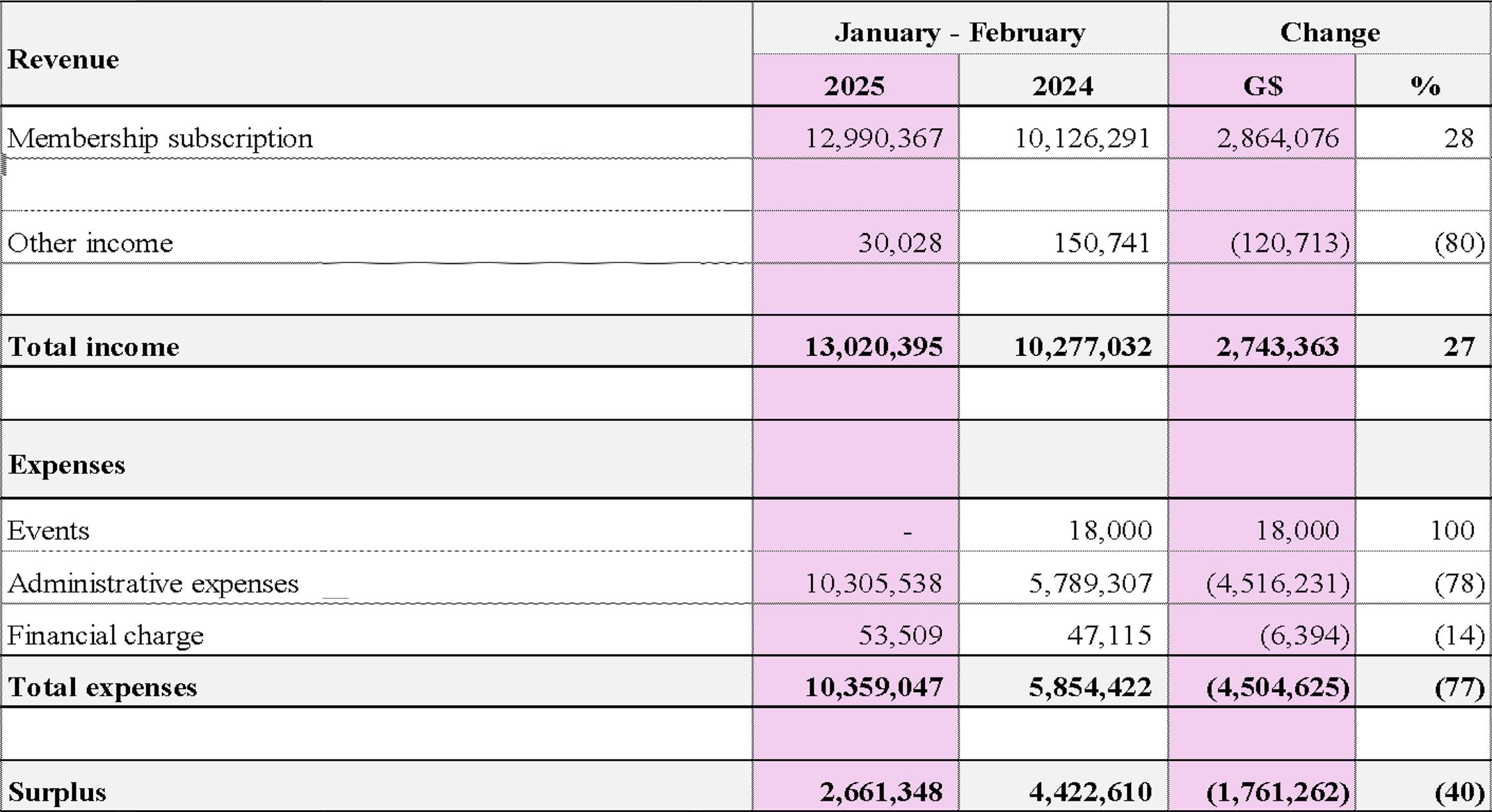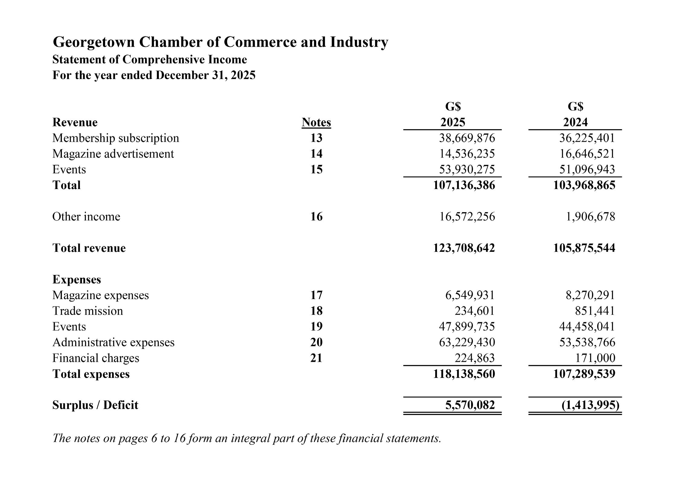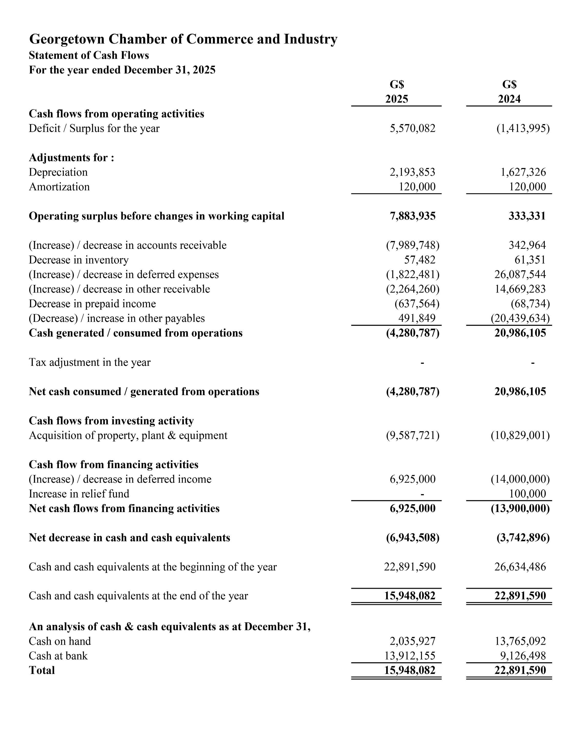 The Georgetown Chamber of Commerce and Industry (GCCI) recorded a surplus of $5.5 million for the year 2025, representing a significant improvement of $6.9 million compared to the $1.4 million deficit recorded in 2024.