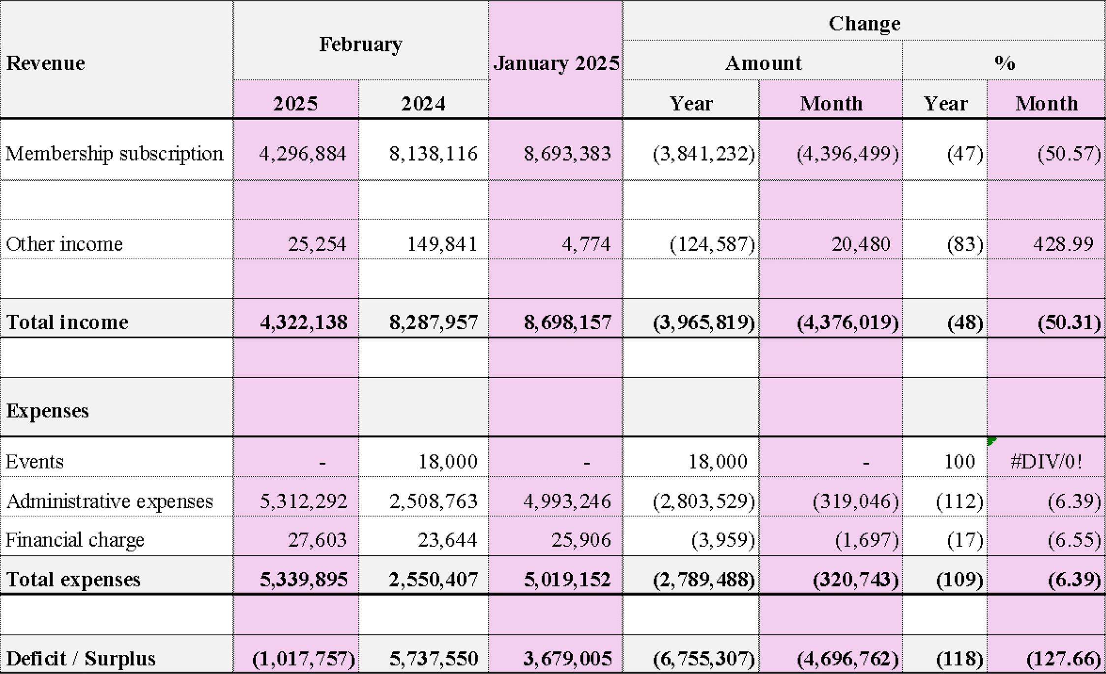 The deficit recorded in 2024 was largely driven by a bad debt write-off of $7.3 million. During 2025, the Chamber implemented stronger accounts receivable management practices, which resulted in a substantial reduction in debt write-offs by approximately 102%, or $3.7 million.